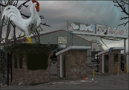 After arriving at the fairgrounds location, the character will spot its two major landmarks, a Ferris wheel and a giant rooster statue. After an uncomfortable moment with the rooster, the player will be offered options to proceed: